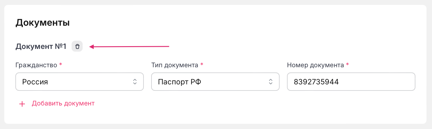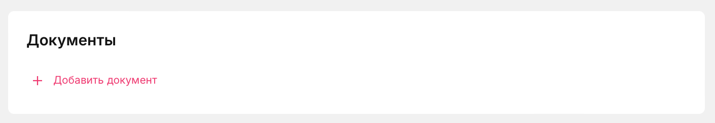 Добавьте хотя бы один документ, чтобы на сотрудника можно было приобретать услуги. Для этого нажмите на кнопку "+Добавить документ".
