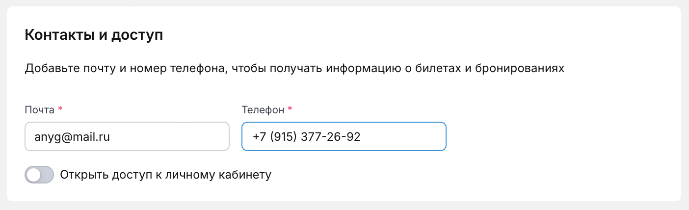 Контакты и доступ