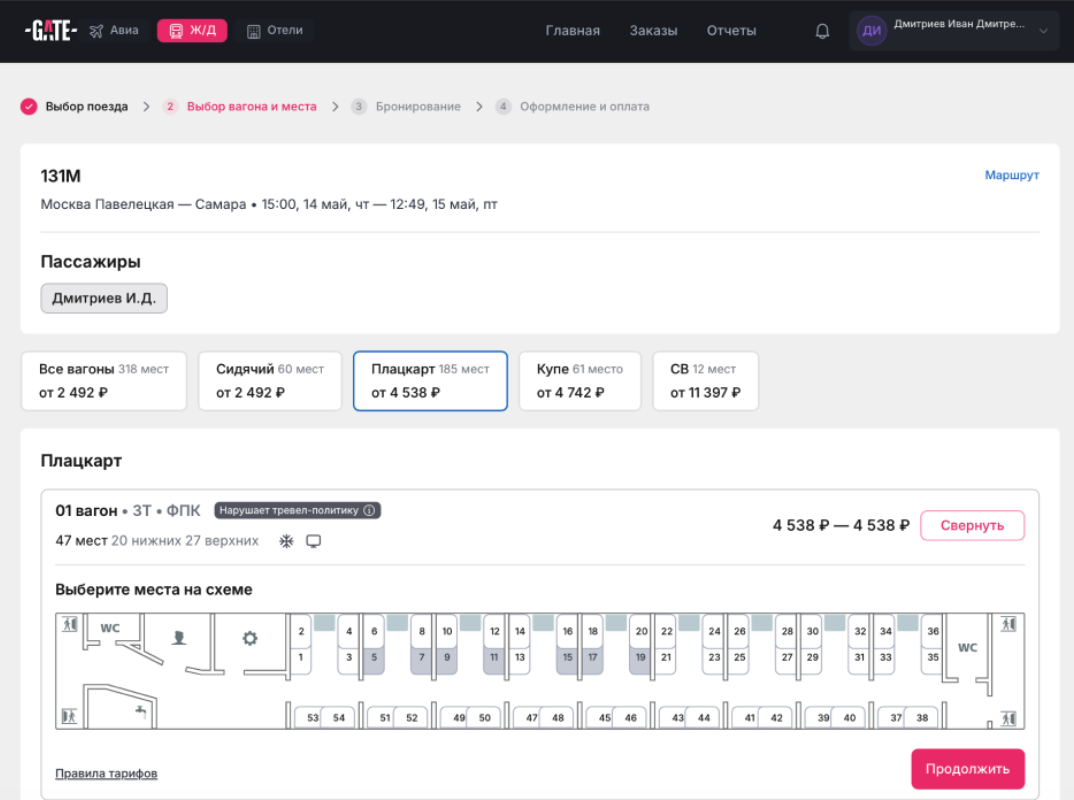 3. Выбор вагона и места