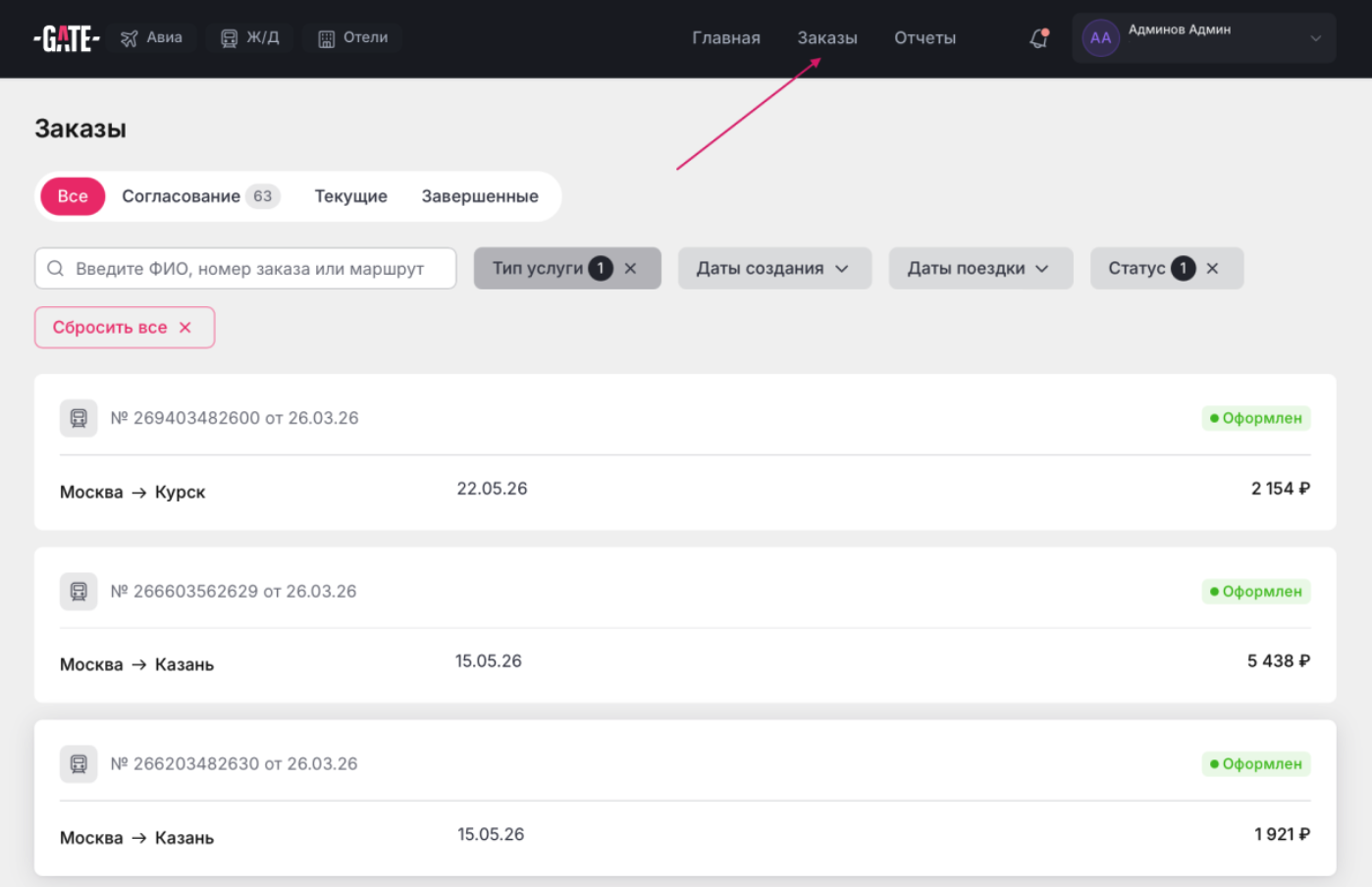 Если вы осуществляете поиск на Главной странице, то на виджете необходимо выбрать услугу Ж/Д.