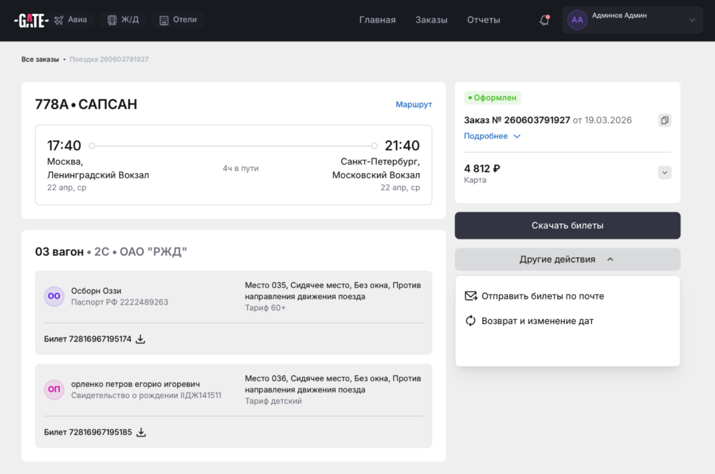 На этой странице вы сможете скачать билеты, а также оформить возврат при необходимости.