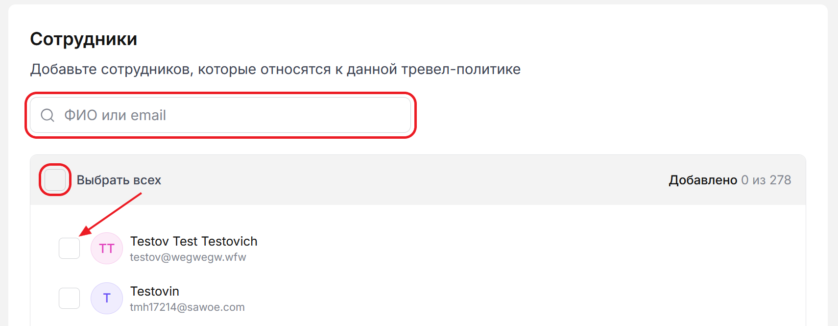 Прикрепите к тревел-политике сотрудников, на которых она будет распространяться.
