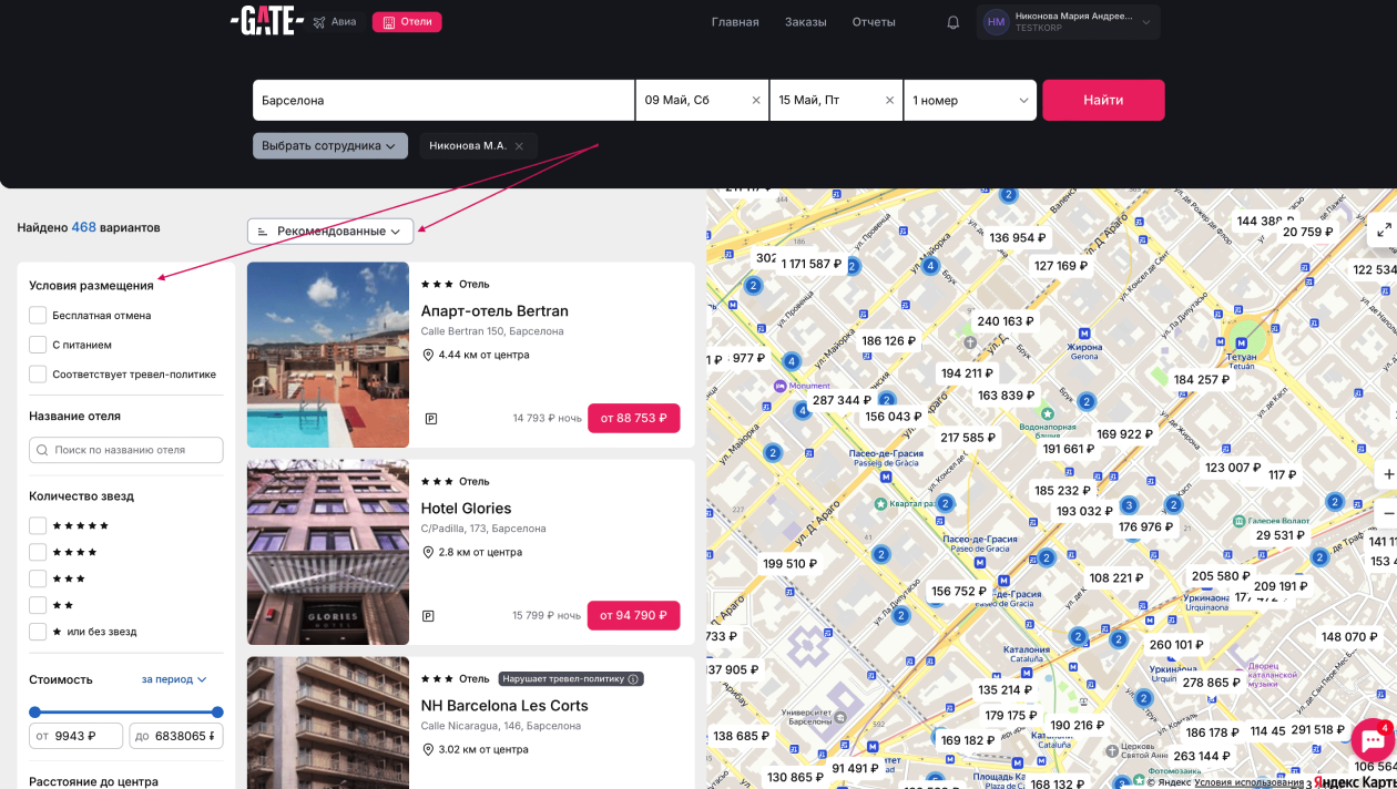 На подходящем варианте нажмите розовую кнопку с ценой или кликните по отелю на карте.