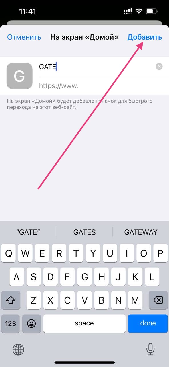 Нажмите на кнопку "Поделиться" расположенную на панели браузера Safari, в открывшемся меню выберите "На экран "Домой"", далее кликните "Добавить"