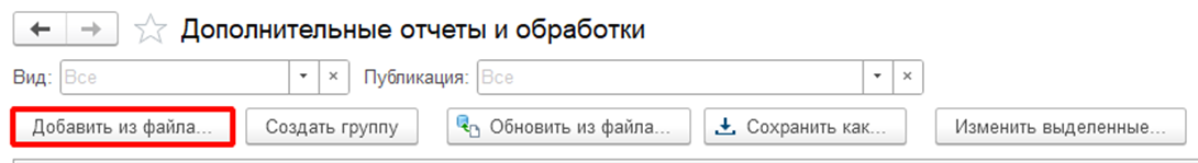 Для добавления внешней обработки в открывшемся окне нужно выбрать "Добавить из файла…".