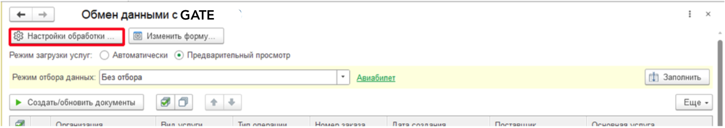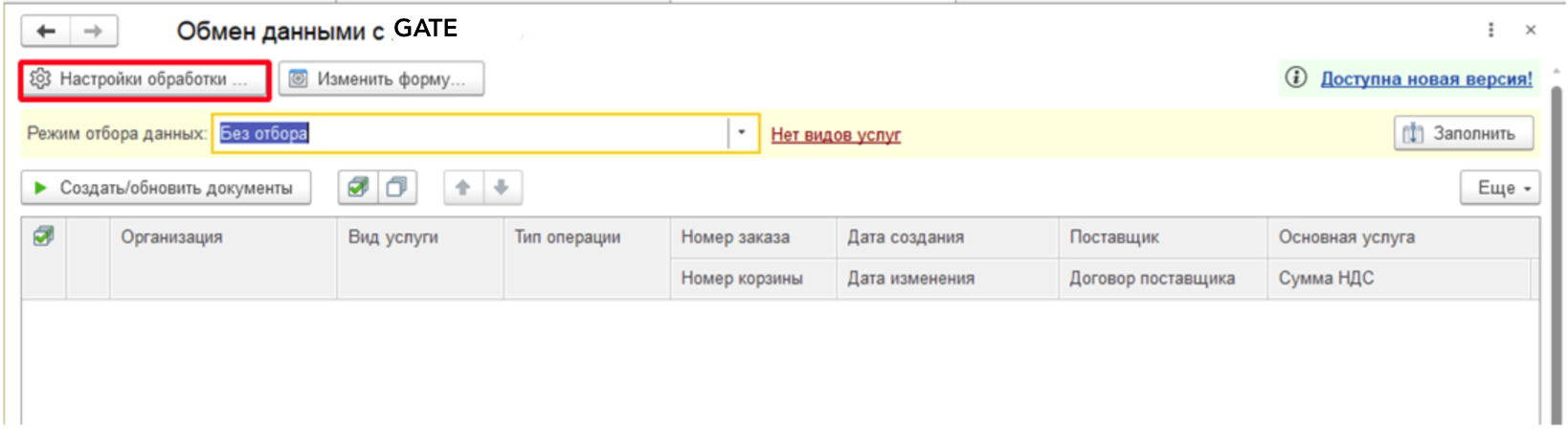 Сверху расположена кнопка "Настройки обработки", при нажатии на которую откроется окно настроек.