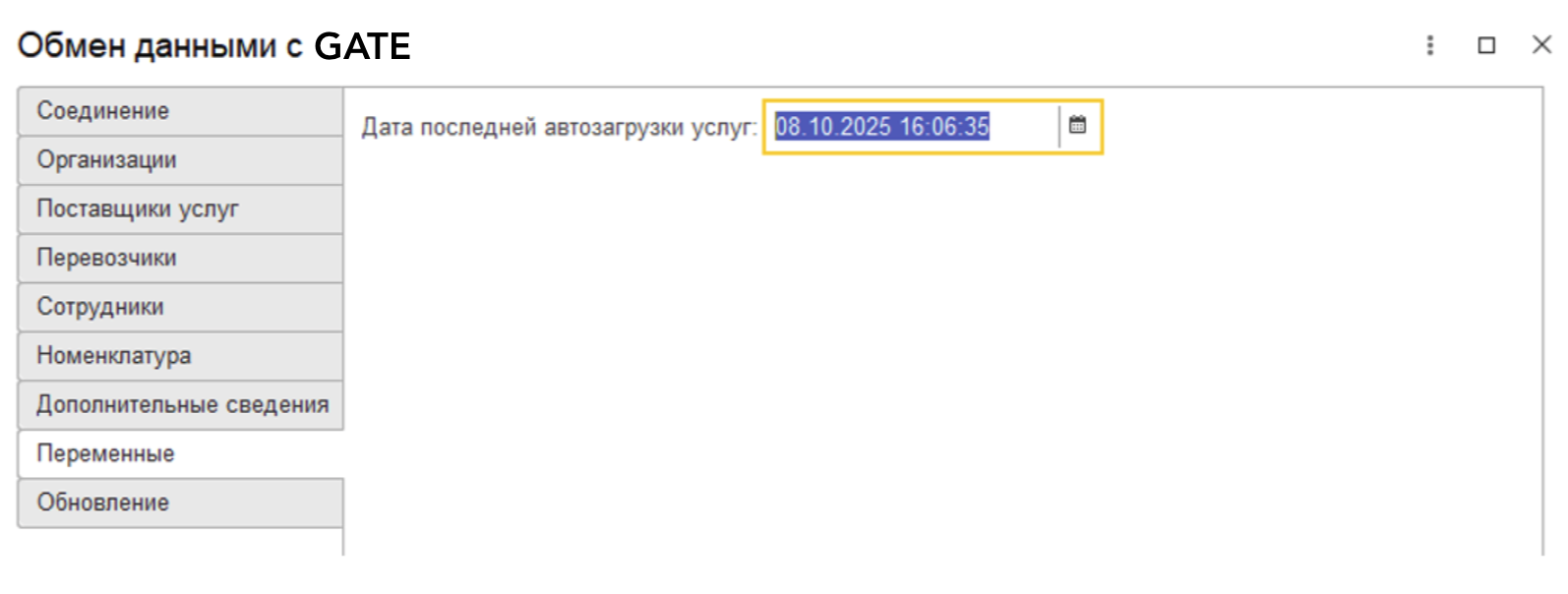 Дата последней автозагруки услуг