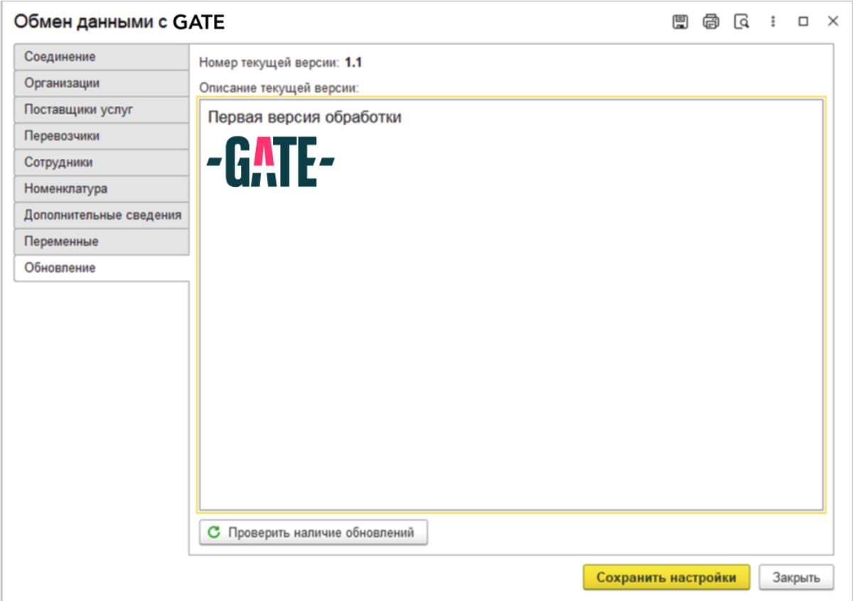 Актуальная версия модуля всегда доступна по ссылке: https://my.gate.ru/integration1c/GATE1C_BP.epf